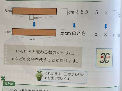 「今まで□を用いて式を立てていたのが、今度からはX(エックス)になるの?」