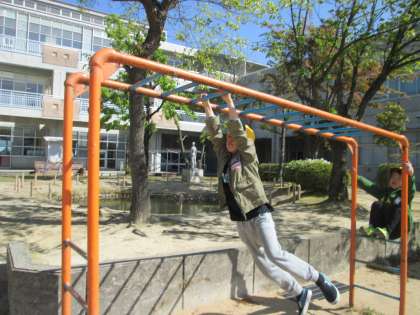 最近の休み時間は、うんていであそぶ様子がよく見られます。おさるさんのように上手にうんていをすることができます。筋力がついてきています。