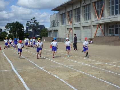 50m走やリレーの練習はもちろん、業間にはラジオ体操の練習もしています。
