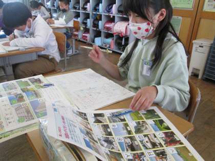 社会科で地図記号を調べました。ものの形になっているものなど、地図記号にも意味があることを知り驚いている子供たちがたくさんいました。