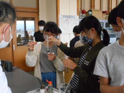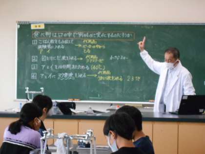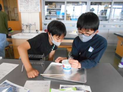 6年生の理科の学習です。実験を通して、その結果から考察していきます。専科の先生が実験準備をしっかりとしてくれているため、限られた時間の中で学習を進めることができます。