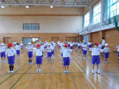 脚や腕の曲げ伸ばしに気をつけながら、しっかりと体操しました。