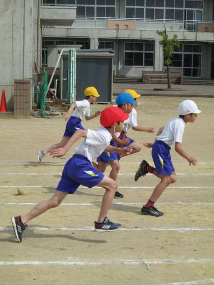 今日は、運動会に向けて「50m走」と「リレー」の整列や移動、競技の練習をしました。昨日練習したことを生かして、自分たちで考えて動くことができるようになってきています。