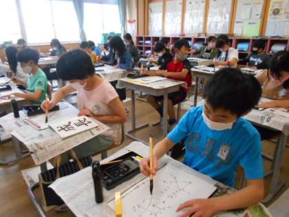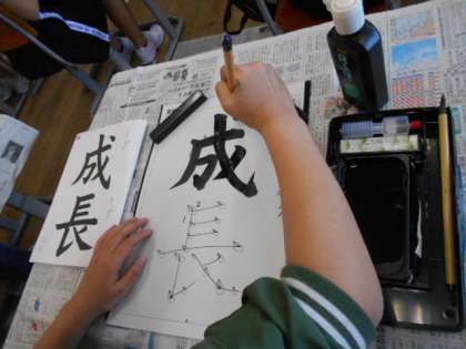 静の学習です。心を落ち着かせて、一筆一筆に心を込めます。