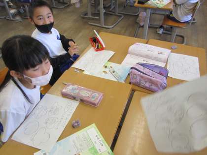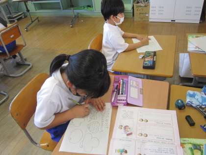 道徳の学習で、友達のいいところをたくさん見つけました。友達から書いてもらったメッセージを見て、嬉しそうにしていました。