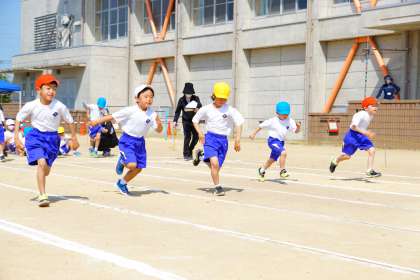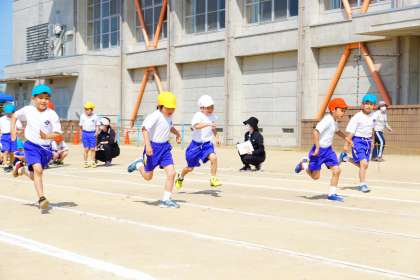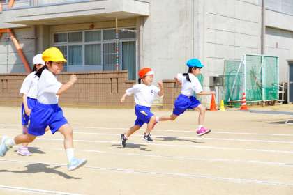 50m走では、ゴールまで力一杯に走りました。「いちについて」のポーズも上手にできていました。