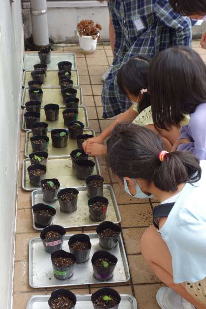 次々とさなぎからチョウになっています。ベランダからみんなでチョウを見送りました。育てている植物も順調に育っています。