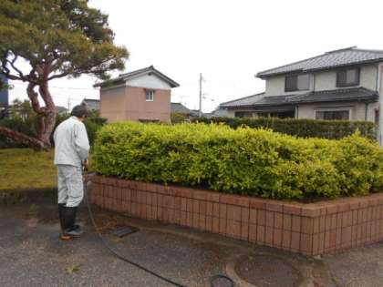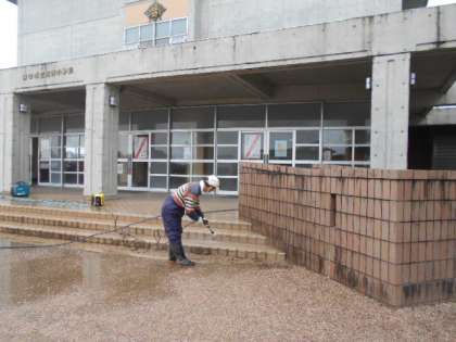 本校の前庭のれんがブロックの汚れが目立ってきていました。今日は、近隣の学校の用務員の方々が来てくださり、共同作業できれいに洗浄してくださっています。高圧洗浄機の威力はすごいです。