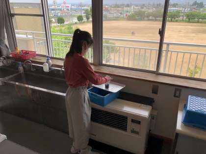 理科の発芽実験中です。正しく実験するためにも、毎日の水やりは欠かせません。