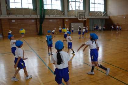 ボールを2つにしてレベルアップです。集中してパスをつなぎました。