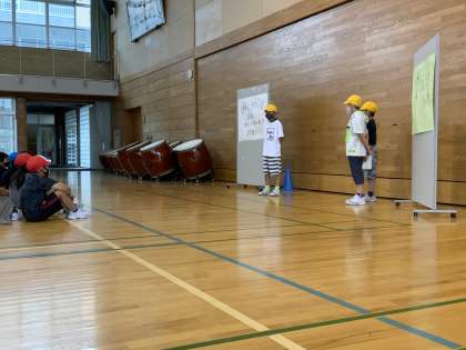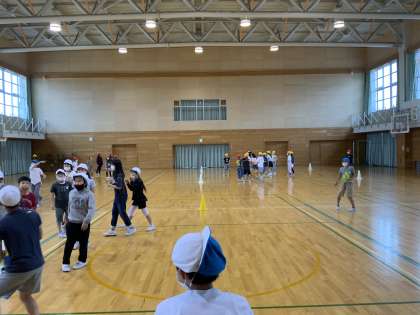 学年目標達成を目指して行う学年集会を行いました。今回は、1組が企画・運営をしました。最初は、けいどろやドッジボールを行いました。公平・公正を期すために、審判の帽子は、色が半々でした。面白い工夫も見られました。