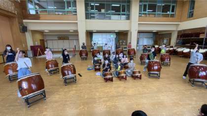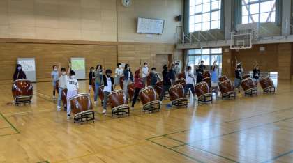 集会の後半は、和太鼓でした。昨年6年生から引き継いだ「大河」「大空」です。「集会でぜひ叩きたい!」という思いがこもったプログラムでした。