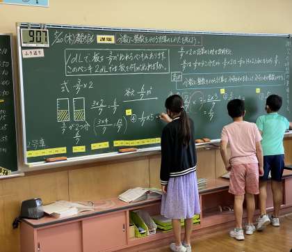 算数科の学習では、分数のかけ算・わり算の学習をしています。