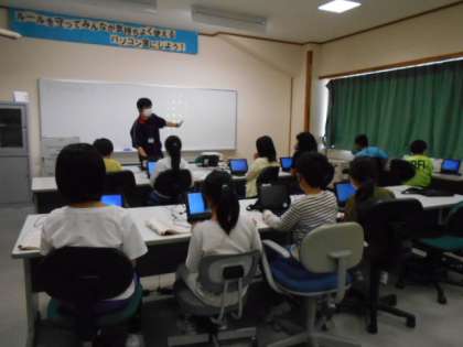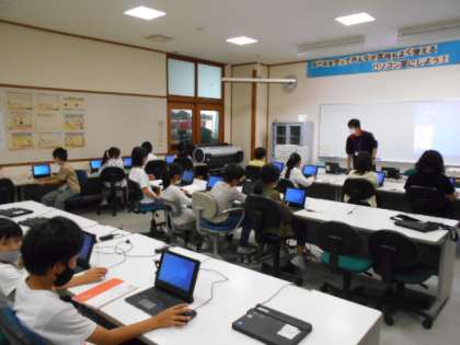 タブレットの基本を学んでいます。パソコン室で行うことで、より専門的な活動が可能になります。