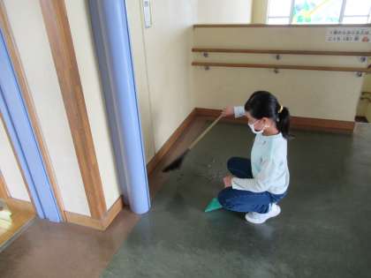 4年生の中には、休み時間から掃除を始めている子供たちがいます。