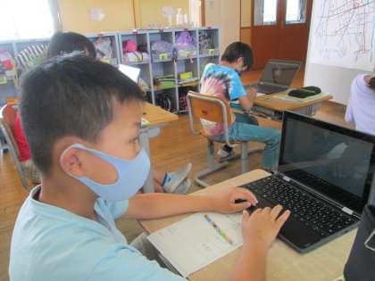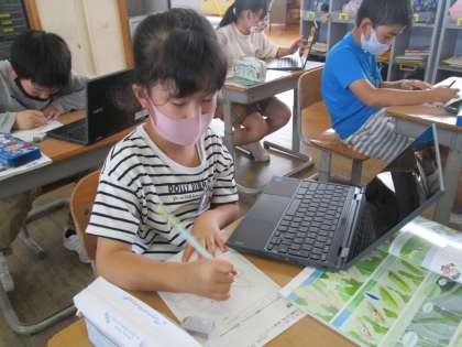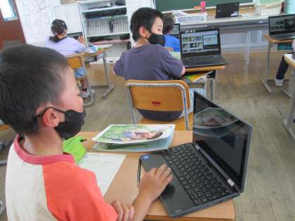 チョウの成虫を観察しました。成虫になったものの先週逃がしてしまったり、まだ幼虫やサナギのものもいたため、クロムブックで成虫を調べての観察を行いました。