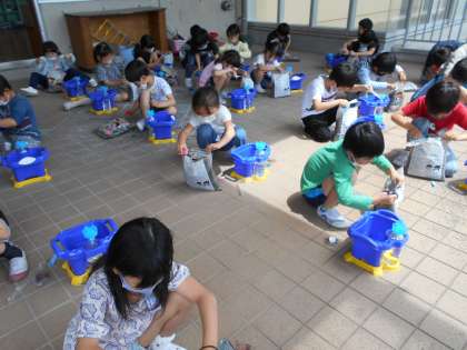 生活科の学習では、あさがおのたねの観察をしました。今日はたねをまきました。