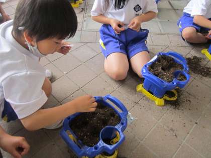 1年生 あさがおのたねをうえたよ