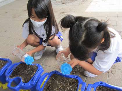 1年生 あさがおの水やり