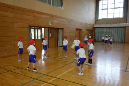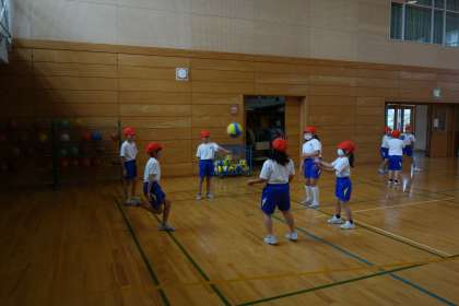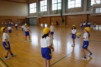 チームごとにパスをつなぐ練習を通して、チームワークを高めています。メンバーの気持ちが一つになり、とても上達してきましたよ。