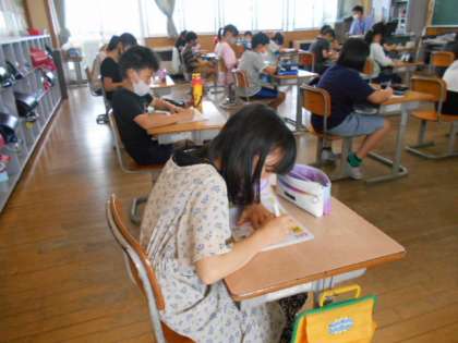朝の学習の時間には、基本的な計算練習の他、漢字にも取り組みます。