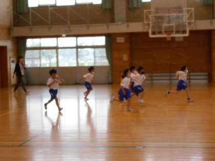 今日は残念ながら朝から雨模様です。校舎内では、静かに過ごします。その代わり、体育館ではしっかりと運動して体を動かします。