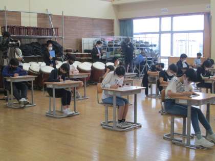 3枚目は、全国学力・学習状況調査の様子です。最後まで、真剣に取り組んでいました。
