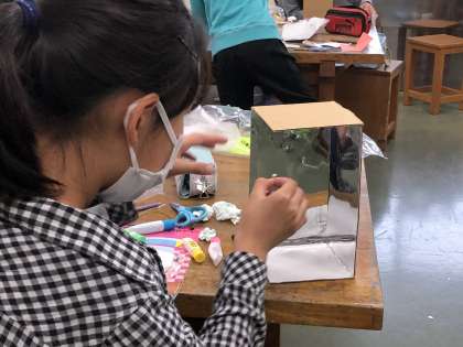 ものが鏡にどのように映るのかを試しながら作品づくりをスタートさせました。
