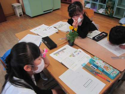 マリーゴールドを、よく見たり、さわったりしながら見つけたことを書き出しました。