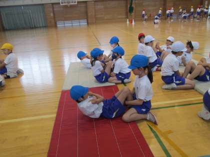 上体起こしにもトライしました。30秒間最後まで諦めずに取り組む子供たちがたくさんいました。