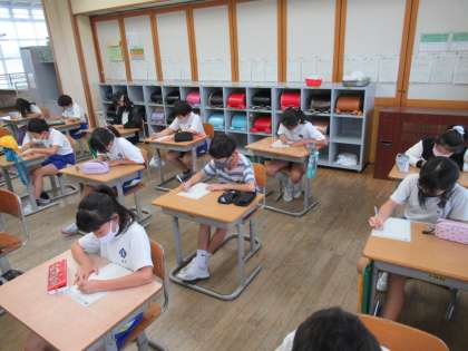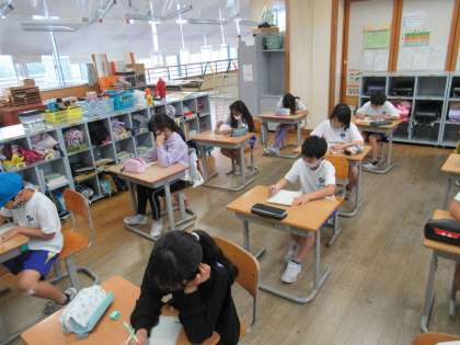 4年生 朝から集中力を高めよう 〜朝活動100ます計算〜