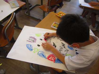 図画工作科の学習中です。ふしぎなたまごから何が生まれるかな?これからのお楽しみです。
