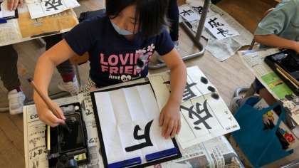 手本の字と自分の字を比べて、今日の目当てを考えました。一人一人の書く字が上達してきました。