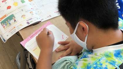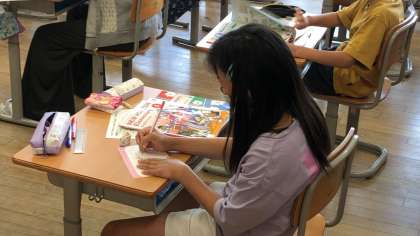 バースデーカードを書く活動を通して、外国語を書くことにも慣れ親しんでいきます。