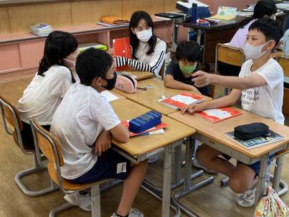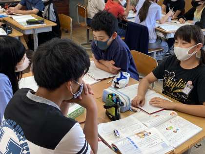 国語科の学習では、話題に対して、賛成・反対の異なる立場の人の意見を聴き合うことで、自分の考えを深めました。