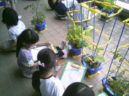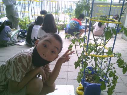 野菜の観察をしました。日々大きくなっていく野菜に子供たちは大喜びです。
