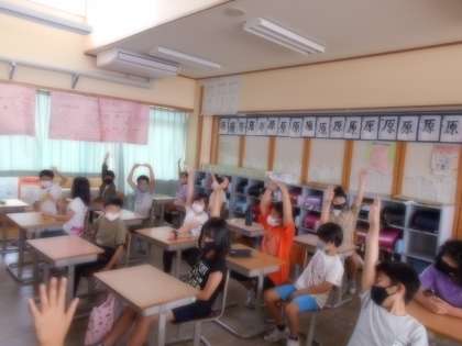 「友達に届ける気持ちで歌った人は、手を挙げましょう。」振り返りで、たくさんの子供たちが手を挙げていました。