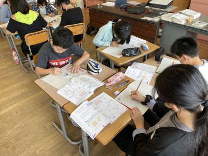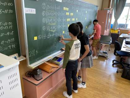 算数科の学習では、分数でも計算の決まりは成り立つのかどうかを実際に数を当てはめて調べました。