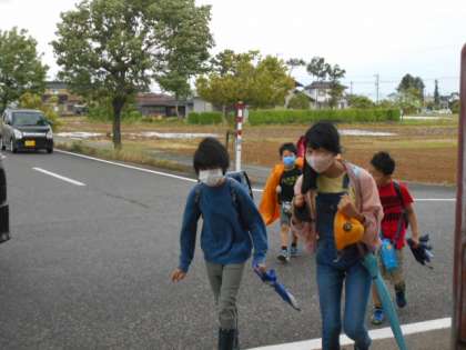 昨夜からの強風の影響が朝もなお続きました。登校してくる子供たちの様子を見ると、帽子が飛ばされないようあらかじめランドセルに入れてきている姿がたくさんあります。風が強いと、帽子や傘は注意が必要です。特に帽子については、こんな日は今朝の子供たちのように、ランドセルに入れて登校していただいてかまいません。