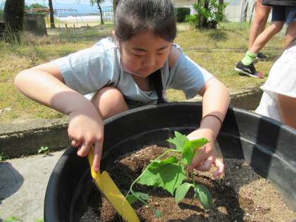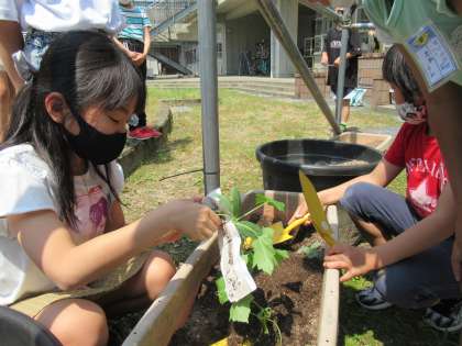 4年生 大きくなったヘチマを植え替えよう  〜理科 ヘチマの栽培〜