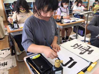 お手本をよく見て、ポイントに気を付けて集中して書いています。