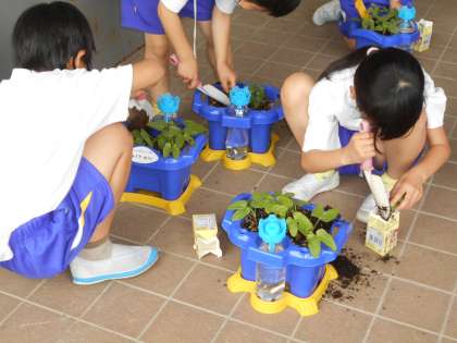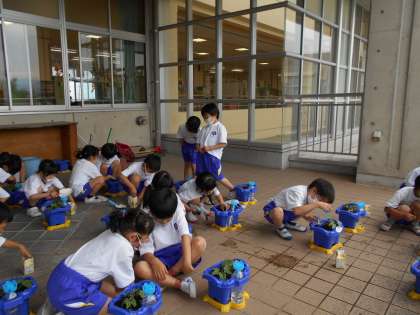 子供たちは、間引きの必要性が分かりました。また、あまり芽が出ていない子供に分けてあげている優しさも見られました。