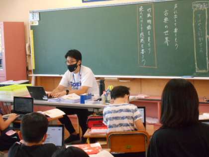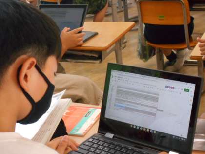 教材文の感想をタブレットで入力することで、クラスの友達全員の感想を共有することができます。関わりの土台として有効です。