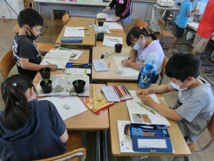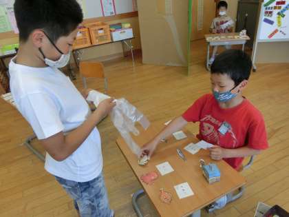 朝は、のぞみ・あおぞら級合同で始まります。今日は、朝トレーニングの日で、体育館で縄跳びをしたり走ったりしました。学習では、支援学級独自の自立活動の時間に「お店屋さん」をしました。受け答えの工夫をしたり友達のよさを見つけたりしています。また、交流学級では、理科や図画工作科、体育科等を一緒にがんばっています。