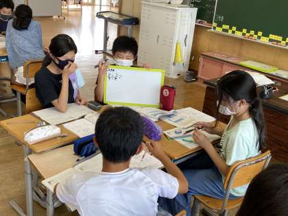 既習事項をもとに解き方を考え、グループで話し合いました。