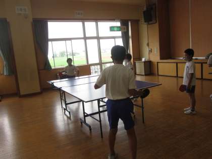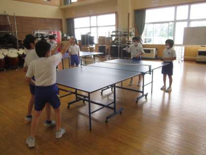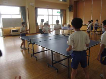 今年度の卓球クラブの目当ては、「みんなで協力し、ちがう学年の仲間と仲良くなろう」です。目当てを決めた後、残った時間で卓球をしました。違う学年の仲間と打ち方の練習をしていたり、進んで片付けをしていたりと、早速目当てを意識した行動が見られました。
