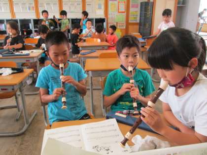 「シ」の音だけで吹くことができる曲を学習すると、休み時間も惜しんで練習する子供たちがたくさんいました。上手くなりたいという気持ちが伝わってきます。