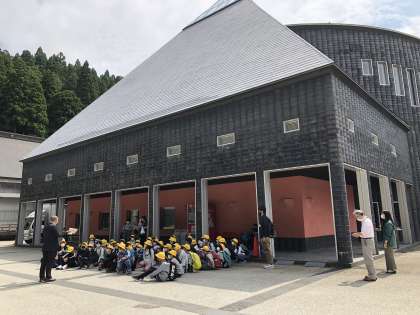 みんな元気に立山博物館に到着しました。利用の説明を聞いています。