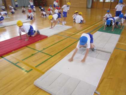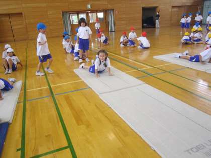 2年生になってから初めてのマット運動をしました。色々な技に挑戦しました。