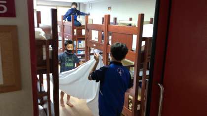 朝を迎えました。協働で朝の準備をしています。
